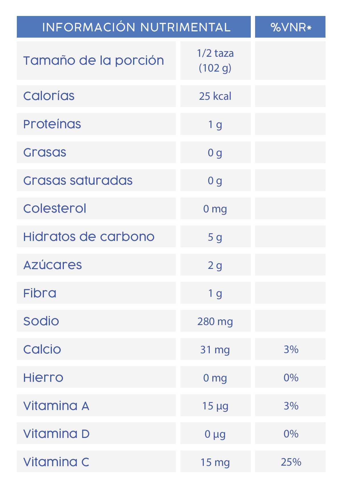 * %VNR: Porcentaje del Valor Nutrimental de Referencia de acuerdo