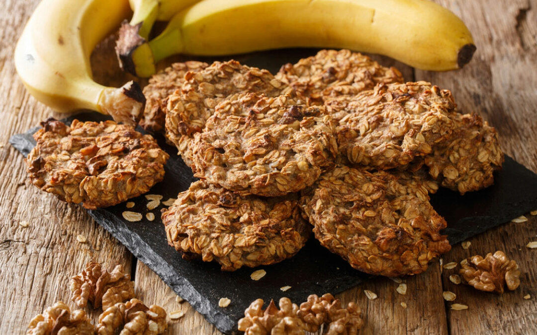 INGREDIENTES: 2 plátanos bien maduros 1 taza de avena ½ cucharadita de canela ½ cucharadita de vainilla ¼ de taza de nueces, pasas o arándanos secos (opcional) Tiempo de preparación: 30 minutosTiempo para cocinar: 45 minutosTiempo total: 75 minutosPorciones: 12...